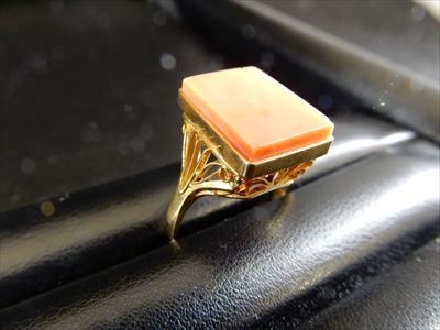 サンゴが宝飾された金素材の指輪のご依頼でした!
