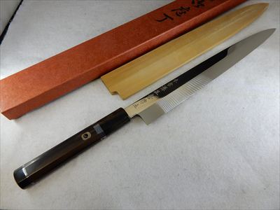 本家 源正吉 刺身包丁 刃渡り:約295㎜ 黒檀柄 鞘付 職人 料理包丁